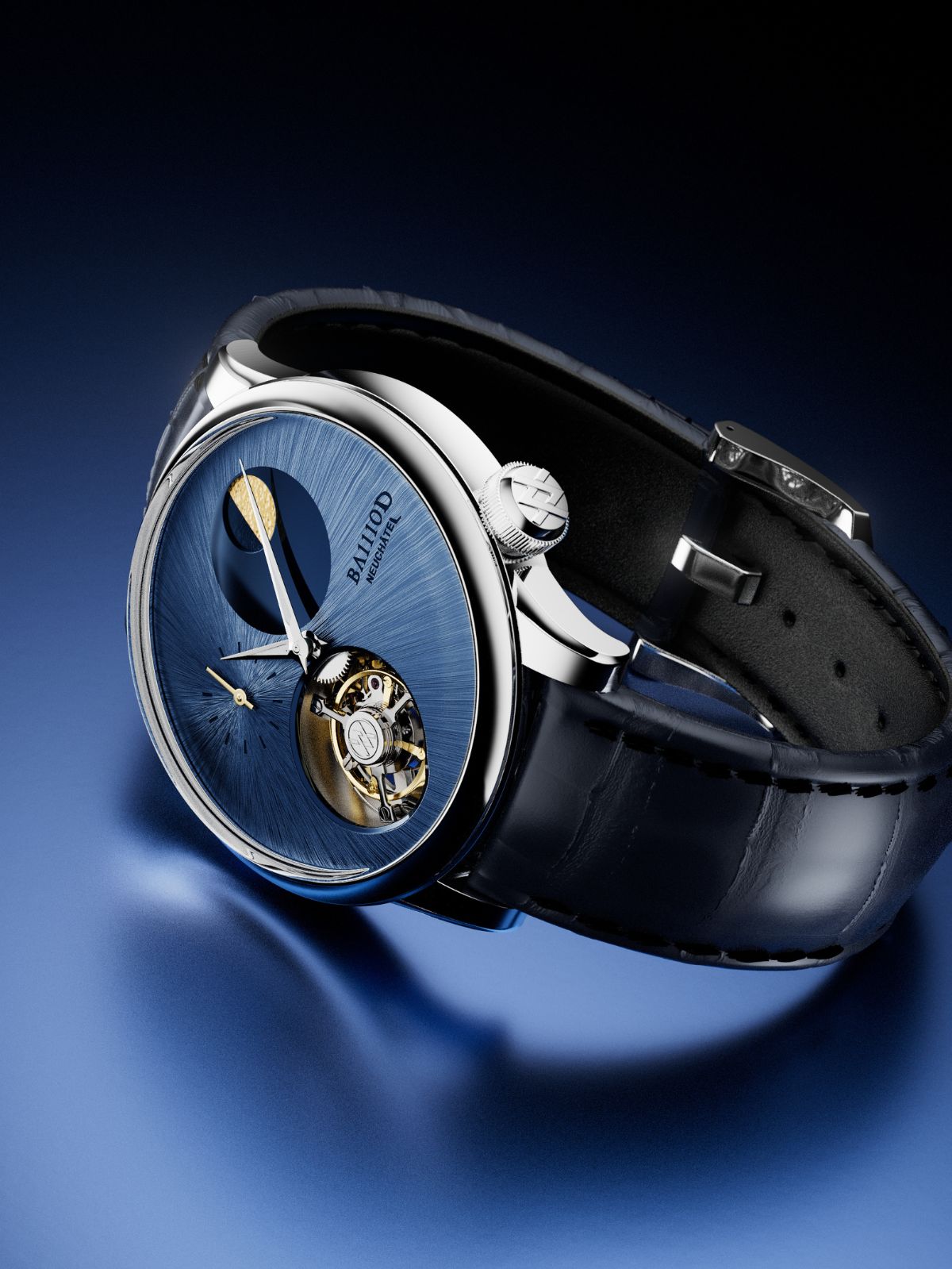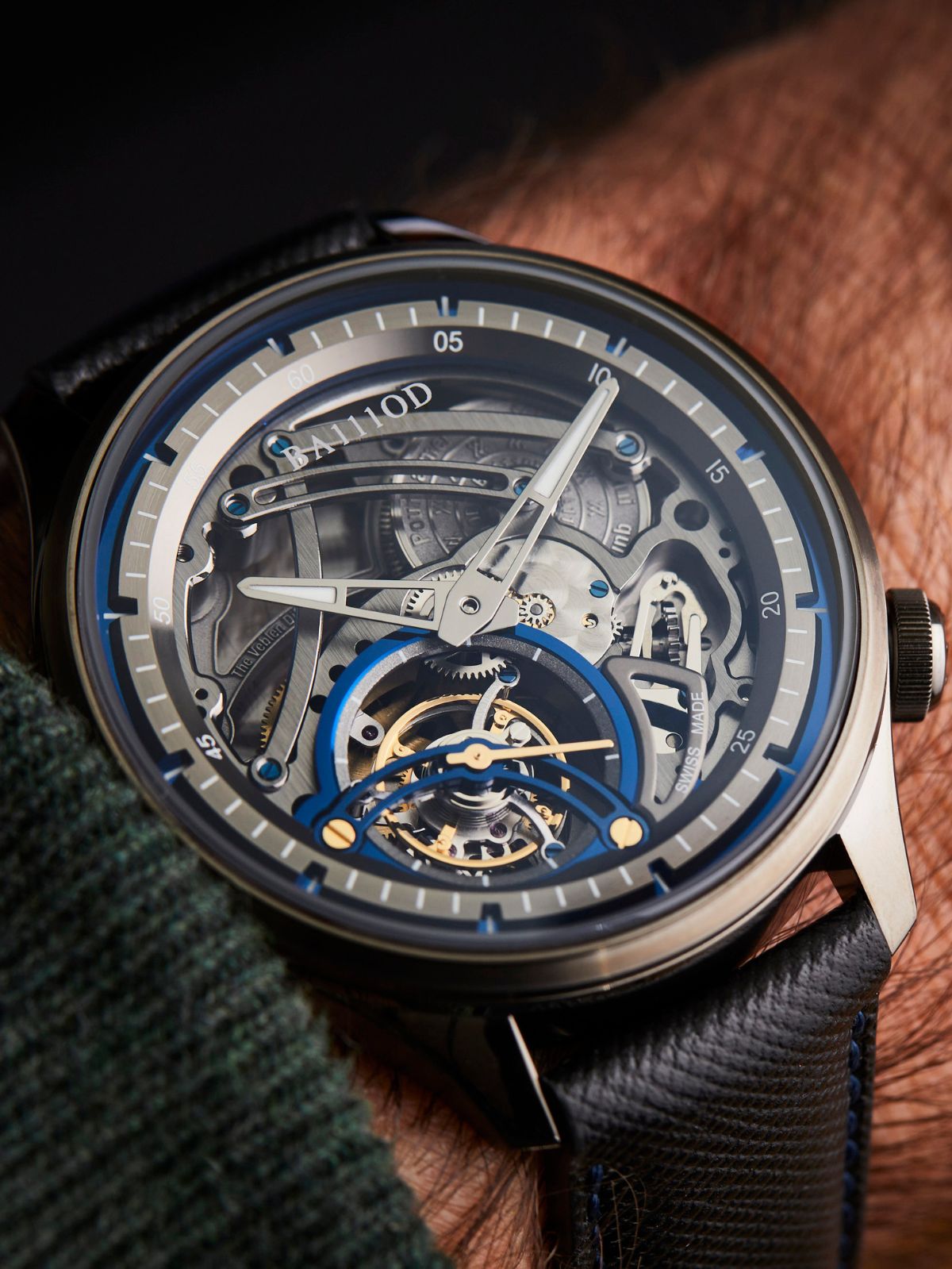 "Diese wunderschöne, minimalistische Dress Watch sollte 5x mehr kosten. Die Schweizer Uhrenmanufaktur Ba111od bietet die Präzision einer Tourbillonhemmung und die Schönheit eines sauberen Onyx-Zifferblatts mit offenem Herzen zu einem relativ günstigen Preis."