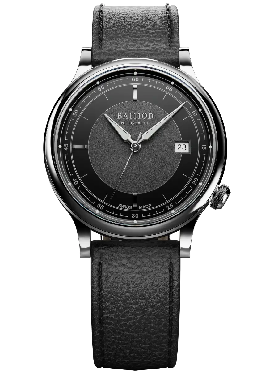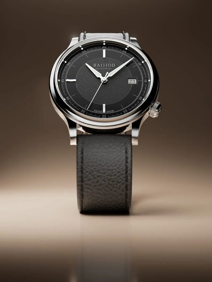 Seit1966 wirdSoprod im Schweizer Jura produziert und ist für die Herstellung zuverlässiger, leistungsstarker Uhrwerke bekannt. Das Automatikkaliber P024 mit einer Gangreserve von 38 Stunden und einem gleichmässigen Schlag von 28.800 Halbschwingungen pro Stunde wird von Schweizer Uhrmachern geschätzt. Durch den transparenten Gehäuseboden wird es sichtbar: kompakt und präzise – das mechanische Herz der Kapitel 8.