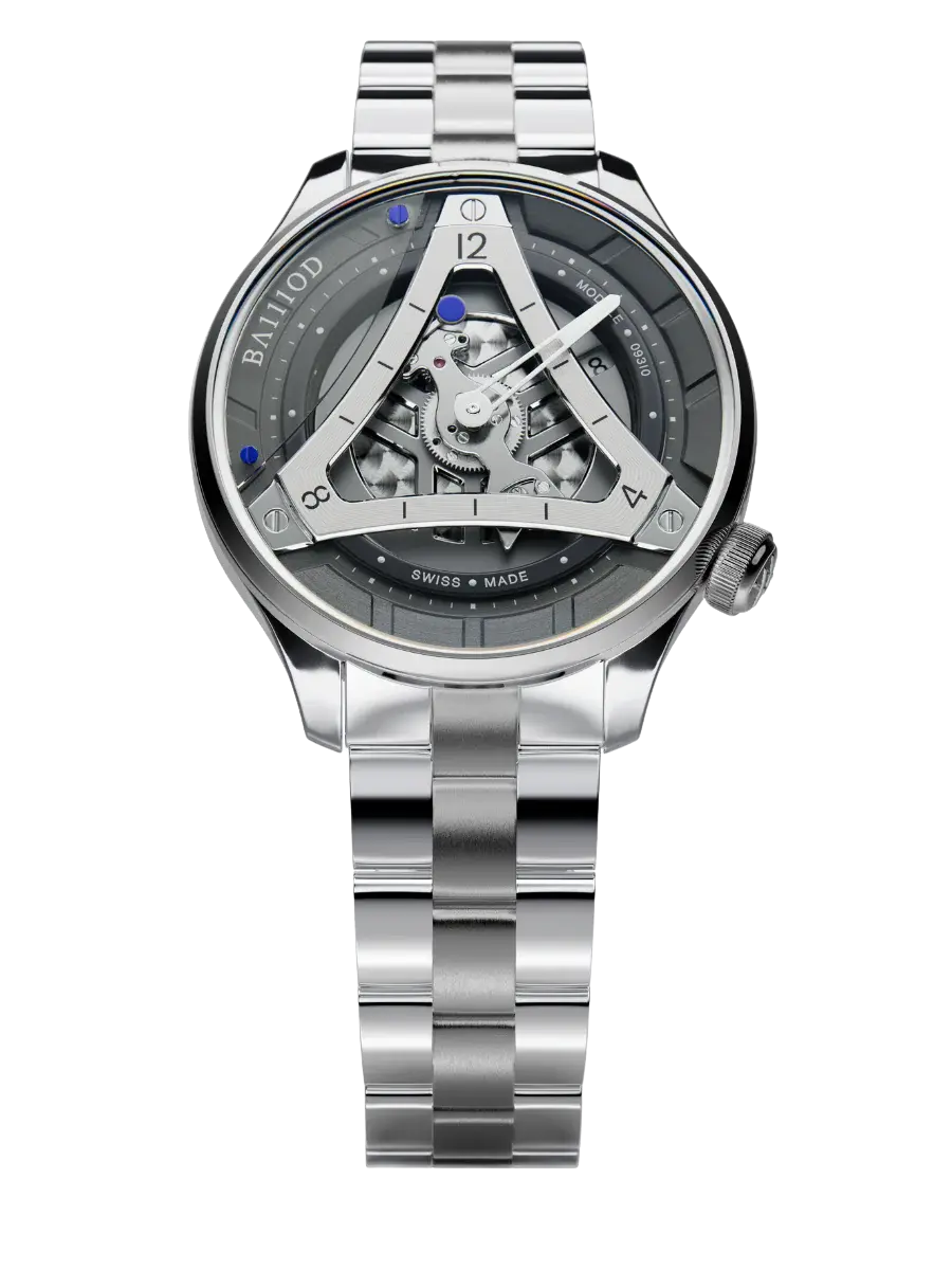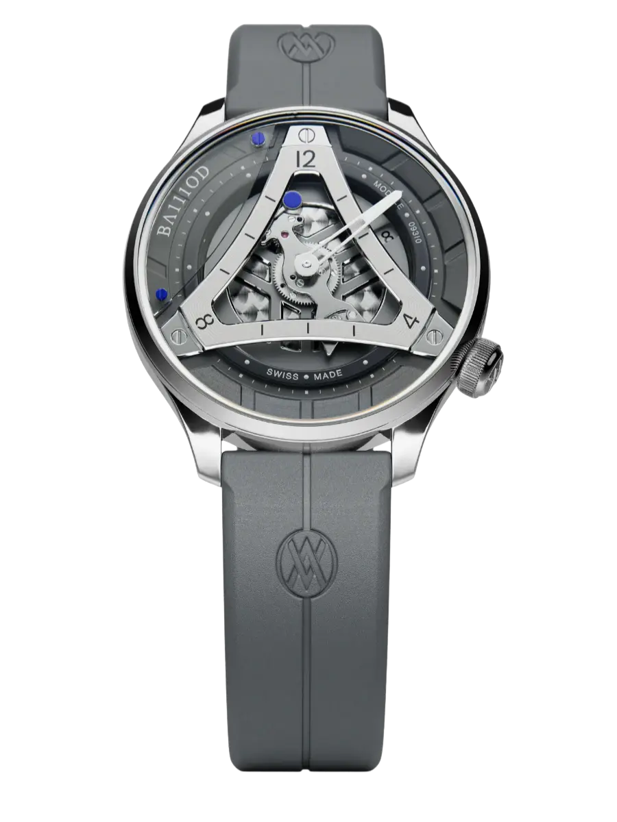 Cette finition grise apporte une dimension dynamique et contemporaine au concept, mettant en valeur son design architectural et son expression mécanique distinctive dans un format raffiné de 40 mm.