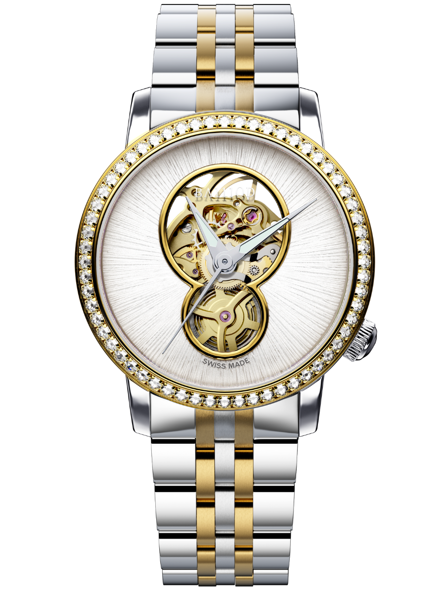 Le Chapitre 6 bicolore allie acier et lumière dans une harmonie subtile, sublimée par une lunette sertie de diamants de laboratoire et un cadran blanc texturé soleillé offrant une vue semi-ouverte discrète sur le mécanisme. Avec ses 36 mm, il s'adapte à tous les poignets avec élégance. À l'intérieur bat un mouvement automatique suisse SOPROD P024 Squelette avec une réserve de marche de 38 heures, protégé par un verre saphir avec double traitement antireflet et un fond transparent. La couronne à 4 heures signe l'identité BA111OD.