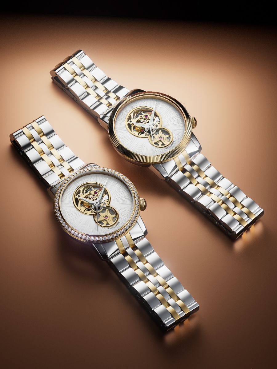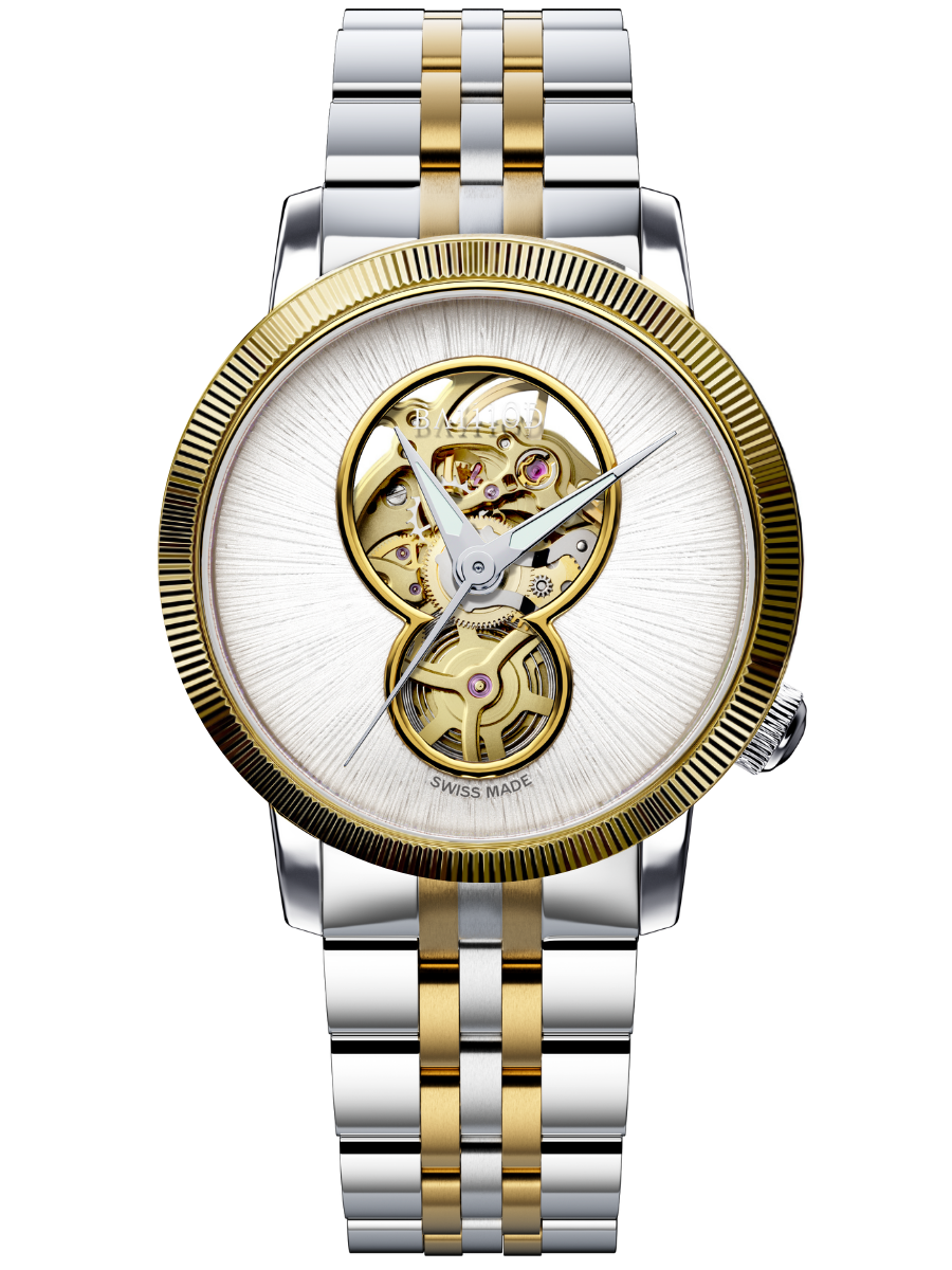 Le Chapitre 6 bicolore allie acier et lumière dans une harmonie subtile, sublimée par une lunette finement striée et un cadran blanc texturé soleillé offrant une vue semi-ouverte discrète sur le mécanisme. Avec ses 36 mm, il s'adapte à tous les poignets avec élégance. À l'intérieur bat un mouvement automatique suisse SOPROD P024 Squelette avec une réserve de marche de 38 heures, protégé par un verre saphir avec double traitement antireflet et un fond transparent. La couronne à 4 heures signe l'identité BA111OD.