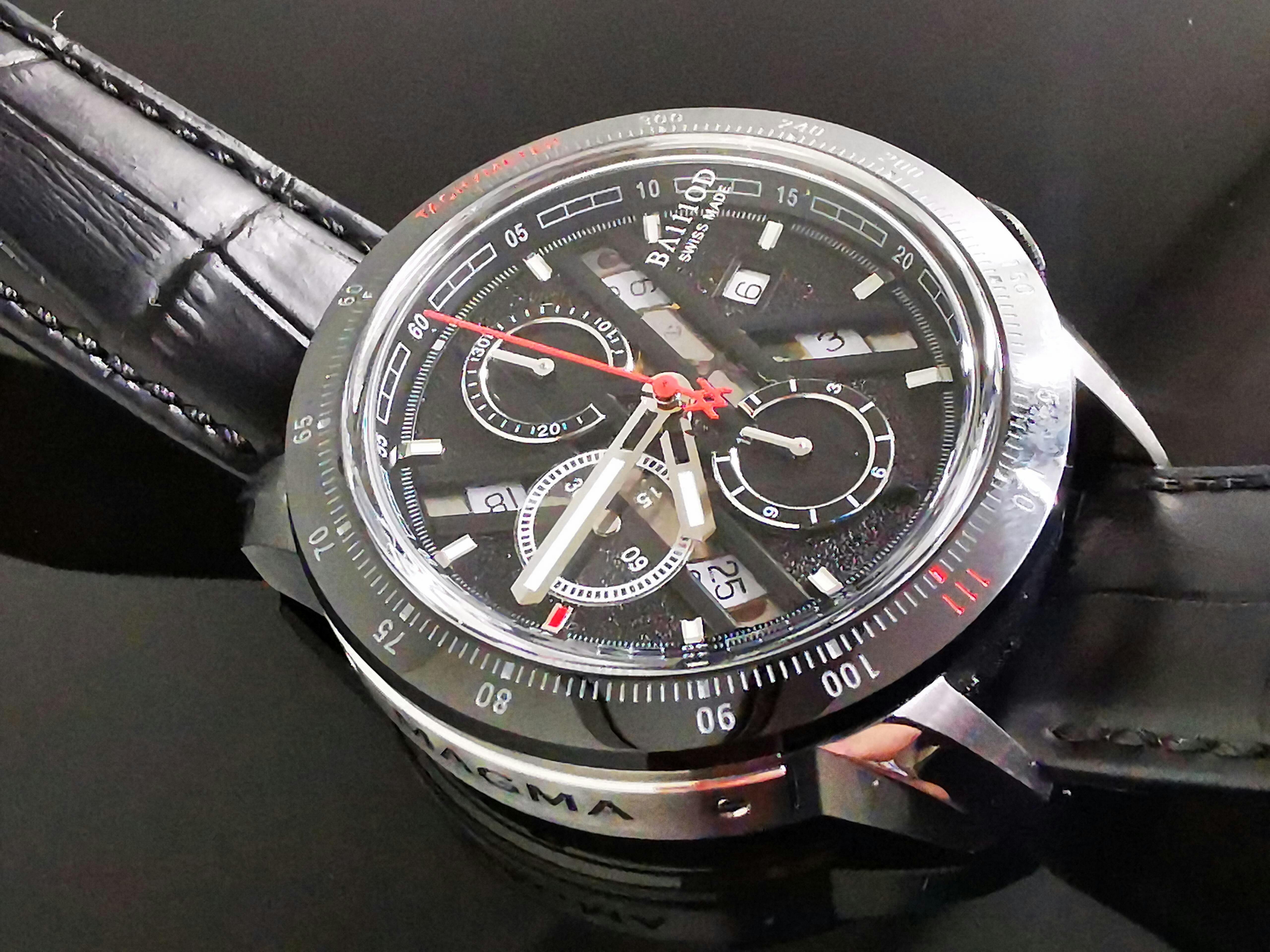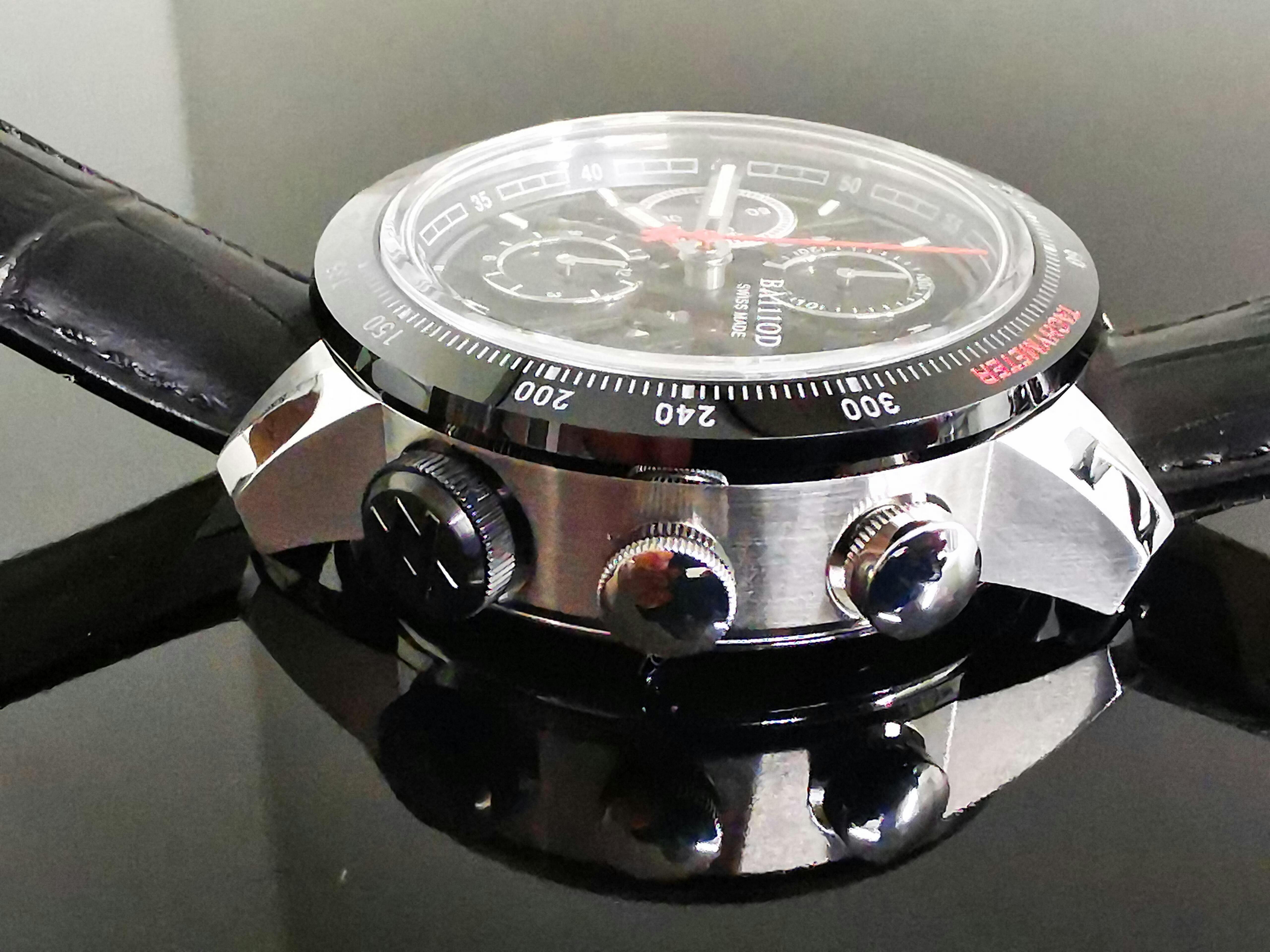 Je ne suis de principe pas un adepte des montres chrono, en voyant cette montre sur le site "Ba111od", c'est le coup de foudre immédiat, c'est une montre que je veux porter. Images, vidéos, je regarde tout ce qui la concerne, son histoire, son développement, et je passe commande. Je la regarde dans son écrin, belle et tellement réussie, et je la passe au poignet. Malgré son épaisseur que j'appréhendais, c'est un format adapté que je retrouve, une montre solide et de toute beauté. L'ajustage du bracelet est simple, il est beau et la boucle est dans la même essence. Ensuite il faut plonger dans les détails de son cadran, se perdre dedans. La lunette céramique qui peaufine son look. Le design est une pure réussite, et quand on la retourne c'est une autre surprise avec ce verre teinté et le mécanisme.