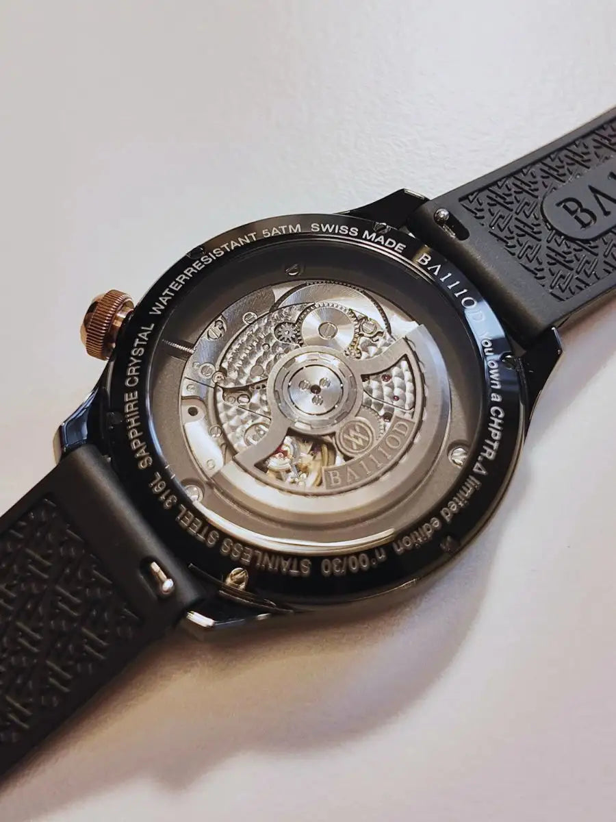 CHPTR_Δ (Delta) is the first manufacture complication developed by BA111OD in Neuchâtel, conceived to challenge traditional ways of reading time. Instead of a conventional rotating hand, the movement features a satellite hour wheel rolling around a fixed central hour wheel.